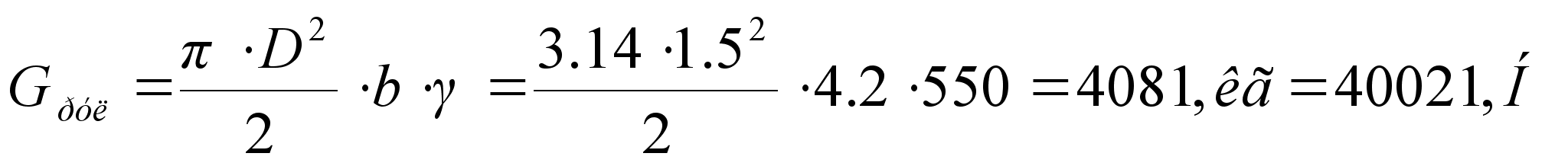 где b – обрезная ширина, 4.2 м - объемный вес намотанного полотна, равный 550 кг/м3 Dрул – диаметр наматываемого рулона, равный 1.5 м - угол между вертикалью и линией соединения центров вала и рулона, = 200