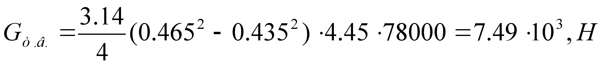 где – плотность стали, 7800 кг/м3, b – длина рабочей части вала, 4.45 м Dн – наружный диаметр бумаговедущего вала, м Dвн – внутренний диаметр бумаговедущего вала, м