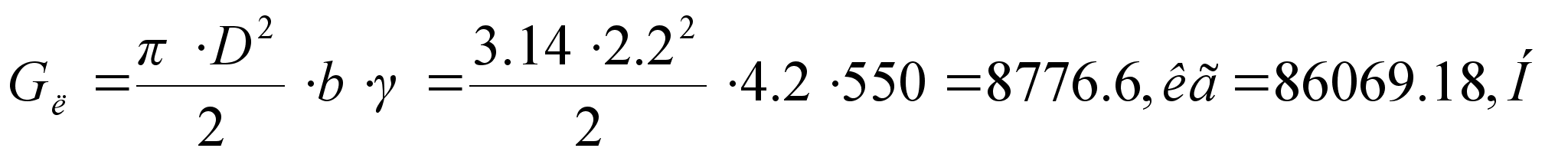 где Во – обрезная ширина, 4.2 м - объемный вес намотанной бумаги равный 550 кг/м3 Vcт – скорость станка, 2200 м/мин = 36.7 м/с g – ускорение свободного падения, 9.81 м/с2 e – добавочная нагрузка от возможного эксцентриситета рулона, принимают равным 0.003 0.005, 0.005