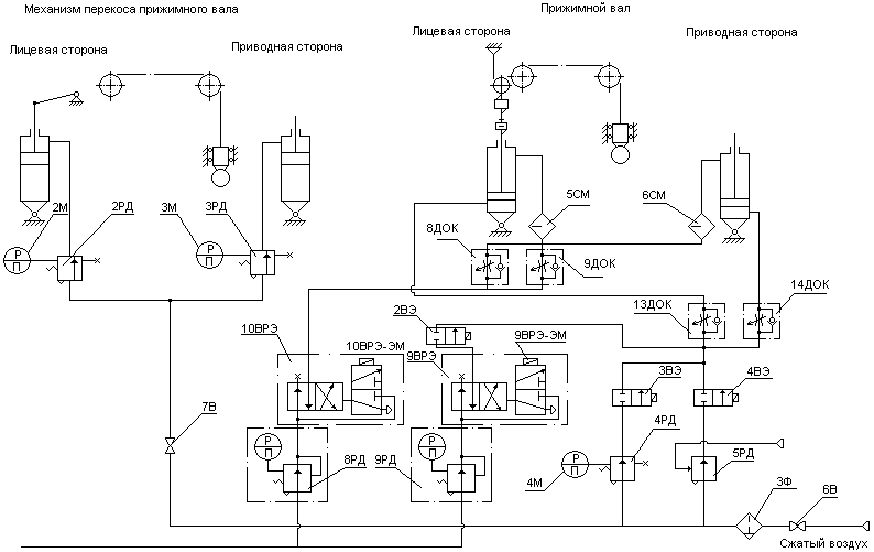 Установлено, что достаточная плотность намотки достигается при qн (34)103 Н/м. С таким давлением прижимается прижимной валик в начале намотки бумаги. По мере увеличения радиуса рулона его вес возрастает, и чтобы сохранить линейное давление рулона на несущие валы постоянным, прижимный валик вывешивают с помощью специальных механизмов вывешивания. При достижении qн = (34)103 Н/м его выводят из контакта с рулоном, и далее плотность намотки обеспечивается действием веса рулона на несущие валы. Для автоматизации процесса вывешивания прижимного вала на современных ПРС устанавливают программные регуляторы давления. Вопросы на защите: