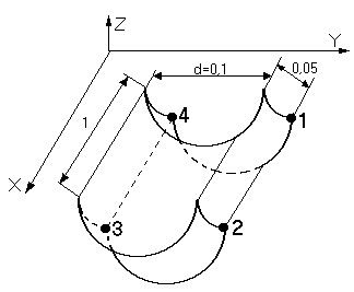 Рис.4 Параметры рабочей зоныНа рисунке 4 представлена рабочая зона рабочего органа. Из данного рисунка видно, что четыре точки позиционирования рабочего органа отмечены цифрами 1,2,3,4.