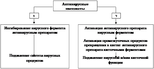 Принцип действия клинически эффективных антивирусных препаратов заключается в прекращении синтеза ДНК-вируса. Молекулярными мишенями противовирусных препаратов являются специфические, связанные с вирусом (вирусные или вирусиндуцированные) ферменты, участвующие в синтезе вирусной ДНК. Так, в клетках, инфицированных ВПГ, появляются вирусиндуцированные ферменты тимидинкиназа, ДНК-полимераза, дезоксирибонуклеаза,урацил-ДНК-гликозилаза, дезоксиуридинтрифосфатаза, рибонуклеотидредуктаза. Эти ферменты по биохимическим и иммунологическим свойствам, а также по особенностям отношения к субстратам отличаются от соответствующих клеточных ферментов. Современные антивирусные препараты работают по схемам, представленным ниже. Для реализации первой схемы нужны соединения, которые избирательно ингибируют только вирусиндуцированный фермент, участвующий в репродукции ВПГ, но не соответствующий ферменту клетки-хозяина (см. Цидофовир, Фоскарнет) . Препараты второй группы изначально не являются активными, но, проникая в ВПГ-инфицированную клетку, обрабатываются (активируются и/или метаболизируются) вирусными ферментами и приобретают способность вмешиваться в синтез вирусной ДНК. Поскольку противовирусные препараты, в идеале, являются субстратом только для вирусных и вирусиндуцированных, но не для аналогичных клеточных ферментов, то препараты являются селективными, т. е. проявляют избирательное вирусстатическое действие и не оказывают никакого влияния на функции клетки. На практике селективность препарата во многом определяется различием уровней сродства лекарственного соединения к вирусным и к клеточным ферментам. Для современных противогерпетических препаратов, относящихся ко второй группе (см. Ацикловир, Валацикловир, Пенцикловир, Фамцикловир) , ферментными мишенями являются тимидинкиназа ВПГ-1, ВПГ-2, ВПГ-3 и ДНК-полимераза всех герпесвирусов. Поэтому мишенями этих препаратов оказываются только те штаммы вирусов, которые используют в своем репродуктивном цикле названные ферменты (например, штаммы ВПГ, дефектные по тимидинкиназе, оказываются устойчивыми к препаратам второй группы). Как следует из механизма действия, препараты не оказывают вируцидного действия. Понятно, что описанные препараты не могут повлиять на вирусы, находящиеся в латентном состоянии, и не могут предотвратить начало их активации, т. е. предотвратить рецидив инфекции. Ацикловир — синтетический ациклический аналог 2-дезоксигуанозида (пролекарство). Для превращения в активную форму он должен быть захвачен клеткой, инфицированной вирусом простого герпеса или вирусом ветряной оспы. В клетке ацикловир воспринимается вирусоспецифической тимидинкиназой как нечто, очень похожее на нормальный клеточный нуклеозид — сырье, необходимое для синтеза вирусной ДНК, поэтому тимидинкиназа фосфорилирует его и превращает в ацикловир-монофосфат. Затем, уже с помощью клеточных ферментов, препарат превращается в ацикловир-трифосфат. Ацикловир-трифосфат ингибирует вирусную ДНК-полимеразу и, конкурируя с нормальным компонентом вирусной ДНК 2-дезоксигуанозин-трифосфатом, встраивается вместо него в растущую цепь ДНК. Так как при этом блокируется 3΄-гидроксильная группа, необходимая для присоединения следующего нуклеотида, то ацикловир-трифосфат становит