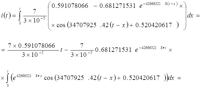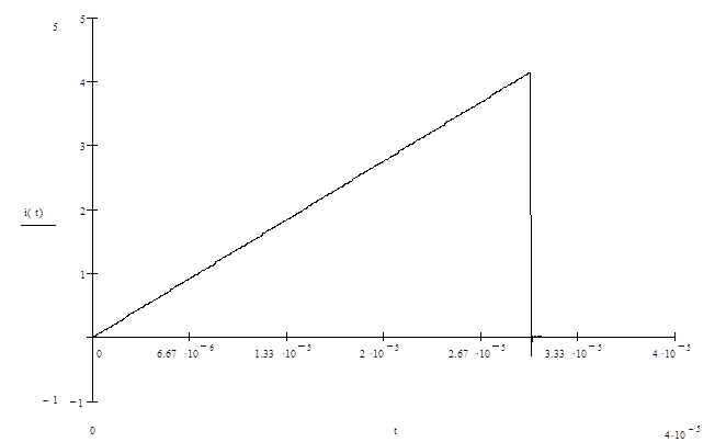 Рисунок 3.10 – Отклик цепи; размерность t – сек, i(t) ‑ Ампер ВЫВОДЫ В процессе выполнения курсовой работы вопросов появляется больше, чем пунктов в задании. Одними из них является семейство вопросов о размерности коэффициентов и промежуточных величин при расчете переходной характеристики, а также размерность ее производной и т.д. В план закрепления материала, на мой взгляд, идут только первые четыре задания, поскольку с такого рода задачами мы встречались, а последние три задания представляют особую важность, их приходится не закреплять – в них приходится разбираться. Достоинством данной курсовой работы является подбор в ней заданий, они не являются нудными и однообразными как, например, курсовые по механике, в которых все одно и тоже и в пять раз больше. СПИСОК ИСПОЛЬЗОВАНЫХ ИСТОЧНИКОВ 1. В. П. Шинкаренко, П. Ф. Лебедев. Методические указания к курсовой работе по курсу « Теория электрических и магнитных цепей». ‑ Харьков: «ХГТУРЭ», 1993. 2. Т. А. Глазенко, В. А. Прянишников. Электротехника и основы электроники. – М.: «Высшая школа», 1985. 3. Г. И. Атабеков. Теоретические основы электротехники. – М.: «Энергия», 1978. 4. Н. В. Зернов, В. Г. Карпов. Теория радиотехнических цепей. – Л.: «Энергия», 1972. |