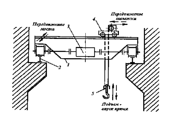 4 – тележка с механизмом передвижения и подъемной лебедкой;