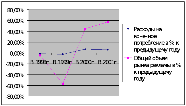 Таблица 5. Изменение расходов на конечное потребление и объема рынка рекламы в России в 1998-2001г.