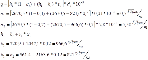4.3. Расчет потерь теплоты и снижения энтальпии теплоносителя при транспортировке по наружным тепловым сетям. Удельные потери теплоты наружными теплопроводами. Пар: