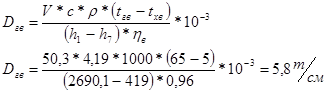 Где Vc - расход горячей воды протекающей по трубопроводу; w - допускаемая скорость горячей воды (для горячей воды 2 – 2.5 м /с ). Секундный объемный расход горячей воды.