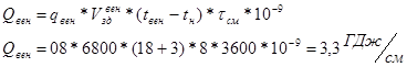 Где qвен - вентиляционные характеристики здания для средней за отопительный период температуры наружного воздуха; Vзд вен - объем вентилируемых помещений технологических цехов (принимается равным 0,35 – 0,45 от общих объемов цехов); Расход пара на нужды вентиляции.