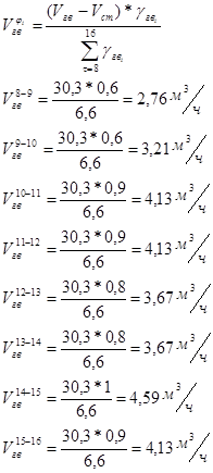 Где Vi - расход горячей воды на выработку отдельных видов продукции. Vн - расход горячей воды на производство остальных видов продукции и коммунальные нужды.