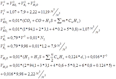 Здесь Vг 0 - объем продуктов сгорания топлива при нормальных условиях и при коэффициенте избытка воздуха, равном 1 м3 /кг , рассчитывается в соответствии с составом топлива;
