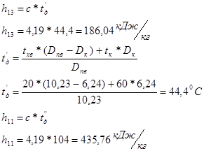 Где h13 - энтальпия воды, поступающей в деаэратор.