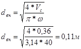 Где Vc - расход пара протекающего по трубопроводу; w - допускаемая скорость пара (для влажного насыщенного пара 30 – 40 м /с ). Секундный объемный расход влажного насыщенного пара.
