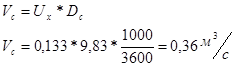 Где Vc - расход конденсата протекающего по трубопроводу; w - допускаемая скорость конденсата (для конденсата 1 – 1.5 м /с ). Секундный объемный расход конденсата.
