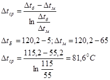 Где к – коэффициент теплопередачи водоподогревателей 1,8; Dt - средняя разность между температурами греющего пара и нагреваемой водой.