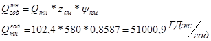 Где zсм ст - число смен в году у сторонних потребителей пара ( принимается в пределах 500 – 700); yст - средний за год коэффициент загрузки производственных мощностей сторонних потребителей пара (принимается равным 0.8 – 0.9). 6.6. Годовой расход теплоты на собственные нужды.