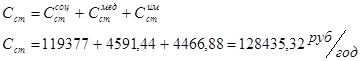 Где Сст соц , Сст мед , Сст им - соответственно отчисления в соцстрах (26% от суммы зарплаты), на медицинское страхование (1% от суммы зарплаты) и страхование имущества (0.08% от капитальных затрат на строительство котельной).