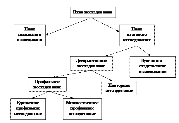 Рис.1 - профильное исследование включает сбор информации из выборки элементов генеральной совокупности один раз за период времени; - повторное исследование включает фиксированную выборку из элементов генеральной совокупности, характеристики которой измеряются повторно. Причинно-следственное исследование предпринимается для получения свидетельств о наличии причинно-следственной связи. После выбора метода проведения исследования следует определить тип требуемой информации и источники ее получения. Обычно при проведении маркетинговых исследований используется информация, полученная на основе первичных и вторичных данных. Вторичные данные – это уже где-то существующая информация, собранная ранее для других целей. Сбор вторичных данных носит название кабинетных исследований. Источники вторичной информации делятся на внутренние и внешние. К внутренним источникам относятся: бухгалтерские отчеты, внутренняя статистика, материалы ранее проведенных исследований, сообщения торгового персонала, обзоры рекламаций потребителей и т.д. К внешним источникам относятся: государственная и отраслевая статистика, данные международных организаций, материалы периодической печати, НИИ, информация, полученная с ярмарок, выставок, конференций, публикации рекламных агентств и т.д. Преимущество вторичной информации заключается в меньшей трудоемкости сбора данных, сравнительной дешевизне и более легком доступе к источникам информации. Недостатком являются запаздывание информации, что может привести к получению устаревших данных, отсутствие гарантии, их точности, а также несоответствие методик получения данных. Первичные данные – информация, которая собрана впервые для какой-либо конкретной цели. Сбор первичных данных носит название метода полевых исследований. Сбор первичных данных требует: 1) выбора способа первичных данных. К наиболее распространенным способам относятся: а) опрос (например, потребителей, сотрудников, поставщиков, торговых организаций и др.); б) наблюдение (например, за поведением покупателей); в) эксперимент (например, путем манипуляции ценой с целью определения ее влияния на объем продаж); 2) подготовки орудий исследования (анкеты, механические устройства); 3) составление плана выборки (единица выборки, объем выборки). Таким образом, логическим продолжением плана является определение способа сбора необходимых данных . Выбор конкретного способа зависит от цели, исследуемого признака и носителя этого признака (человек, предмет). Опрос заключается в сборе первичной информации путем прямого задавания людям вопросов относительно уровня их знаний, отношений к товару, предпочтений и покупательского поведения. Опрос – самый распространенный способ сбора информации, на него приходится около 90% всех исследований. Опросы можно классифицировать по следующим признакам: - по кругу опрашиваемых (покупатели, эксперты, предприниматели и т.п.); - по количеству тем, входящих в опрос (одна или несколько); - по частоте опроса (разовый или повторный опрос); - по охвату опрашиваемых (сплошной или выборочный): - по форме опроса (анкетирование, интервьюирование). При анкетировании опрашиваемые (респонденты) получают опросные листы, которые самостоятельно заполняют, письменно отвечая на вопросы в присутствии исследователя, осуществ