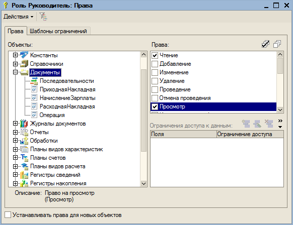 Реферат: Описание методов разграничения прав доступа в 1С предприятие 8