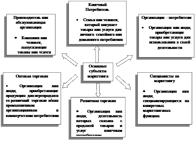 2. Анализ потребителей, как реальных, так и потенциальных. Данный анализ заключается в исследовании демографических, экономических, социальных, географических и иных характеристик людей, принимающих решение о покупке, а также их потребностей в широком смысле этого понятия и процессов приобретения ими как нашего, так и конкурирующих товаров; 3. Изучение существующих и планирование будущих товаров, то есть разработка концепций создания новых товаров и/или модернизации старых, включая их ассортимент и параметрические ряды, упаковку и т. д. Устаревшие, не дающие расчетной прибыли товары снимаются с производства и рынка. 4. Планирование товародвижения и сбыта, включая создание, при необходимости, соответствующих собственных сбытовых сетей со складами и магазинами и/или агентских сетей; 5. Обеспечение формирования спроса и стимулирование сбыта (ФОССТИС) путем комбинации рекламы, личной продажи, некоммерческих престижных мероприятий (“паблик рилейшнз”) и разного рода материальных стимулов, направленных на покупателей, агентов и конкретных продавцов; 6. Обеспечение ценовой политики, заключающейся в планировании систем и уровней цен на поставляемые товары, определении “технологии” использования цен, кредитов, скидок и т. п. 7. Удовлетворение технических и социальных норм региона, в котором сбывается продукция, что означает обязанность обеспечить должную безопасность использования товара и защиты окружающей Среды, соответствие морально-этическим правилам, должный уровень потребительской ценности товара; 8. Управление маркетинговой деятельностью (маркетингом) как системой, то есть планирование, выполнение и контроль маркетинговой программы и индивидуальных обязанностей каждого участника работы предприятия, оценка рисков и прибылей, эффективности маркетинговых решений. 1.2. Цели и функции маркетинга Маркетинг затрагивает множество людей такими разнообразными способами, что неизбежно порождает противоречия. Некоторые активно недолюбливают деятельность по современному маркетингу, обвиняя его в разрушении окружающей среды, бомбардировке публики глупой рекламой, создании ненужных потребностей, заражении молодежи чувством алчности и целом ряде других прегрешений. Другие яростно защищают маркетинг. Вероятное и уже происходящее регулирование маркетинга во всемирном масштабе наводит на самый существенный вопрос: какова же истинная цель системы маркетинга? Предлагается четыре альтернативных варианта ответа: Достижение максимально возможного высокого потребления; достижение максимальной потребительской удовлетворенности; представление максимально широкого выбора; максимальное повышение качества жизни. Достижение максимально возможного высокого потребления Многие руководители делового мира считают, что цель маркетинга - облегчать и стимулировать максимально высокое потребление, которое в свою очередь создает условия для максимального роста производства, занятости и богатства. За всем этим кроется утверждение, что, чем больше люди покупают и потребляют, тем счастливее они становятся. "Чем больше - тем лучше" - так звучит этот боевой клич. Однако некоторые сомневаются в том, что возросшая масса материальных благ несет с собой и больше счастья. Их кредо: "Чем меньше - тем больше" и "немного - это здорово". Достижени