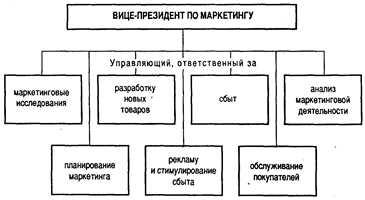 Обобщенная схема, характеризующая место и роль маркетинговых служб предприятия, представлена на рис. 3. Эта схема не является оргструктурой управления, в ней не представлены конкретные структурные звенья предприятия, а указаны только важнейшие с точки зрения маркетинга функции управления. Руководитель маркетинговых служб выполняет опосредующие функции между подразделениями и сотрудниками предприятия, занимающимися разработкой продукта, его производством, стимулированием продаж, распределением, продажей, послепродажным обслуживанием и потребителями продукции. При этом руководитель маркетинга и его аппарат отслеживают состояние внешней среды маркетинга, обращая в первую очередь внимание на деятельность конкурентов. Рис. 3. Место и роль маркетинга в системе управления предприятиемЗадача службы маркетинга заключается в том, чтобы держать курс на потребителя, постоянно следить за тем, что ему нужно, а также следить за деятельностью конкурентов, определять слабые и сильные их стороны, исходя из этого определять направление совершенствования своей деятельности, доводить эту информацию до всех других подразделений предприятия. Таким образом, разработчики получают от маркетинговых служб информацию о развитии продукта, о том, в каком направлении нужно совершенствовать выпускаемую продукцию и какую новую разрабатывать. Производственники узнают, какой должен быть ассортимент выпускаемой продукции, каковы сроки ее обновления. Подразделения, связанные с ценовой политикой, исходя из информации, полученной от службы маркетинга, должны уметь правильно определять цепы. Кадровая служба соответственно решает вопросы увольнения и найма, переквалификации и т.д. В то же время служба маркетинга должна точно представлять возможности предприятия, чтобы, занимаясь его развитием, не оторваться от реальной жизни предприятия. Рассмотренная схема очень важна как база, основа маркетинговой деятельности. Исходя из этой основы, можно составлять также и должностные инструкции. Это не означает, конечно, что производственные и функциональные звенья предприятия самостоятельно не могут осуществлять связь с потребителями, не изучают ситуацию у конкурентов и т.п. Однако эта их деятельность направляется и координируется руководителем маркетинговых служб, сотрудники которых проводят также конкретные маркетинговые исследования. Таким образом, маркетинг является ведущей функцией, определяющей техническую, производственную политику предприятия, стиль и характер управления всей предпринимательской деятельностью. Специалисты по маркетингу находятся в начале, а не только в конце производственного цикла. Они должны установить и довести до каждого работника, каким потребитель хочет видеть данный продукт, какую цену он готов платить и где и когда потребуется этот продукт. Маркетинговые службы оказывают влияние на реализацию всех важнейших функций предприятия. Исследования показывают, что в структуре управления маркетинговой службой предприятий целесообразны следующие функциональные подразделения: 1. Маркетинговая группа (группа изучения рынка), которая создается на базе планово-экономического отдела хозяйств. 2. Служба сбыта для выполнения следующих функциональных задач: организация продаж; сбор информации о потенциальных покуп