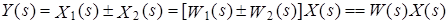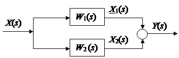 Рисунок 2 – Параллельное соединение Выразим преобразование Лапласа выходной координаты через преобразование Лапласа входной координаты и выражения передаточных функций отдельных звеньев параллельного соединения, под которым понимается суммирование выходных координат этих звеньев: