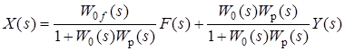 Определим теперь выражение изображения выходной координаты замкнутой системы через изображения входных координат (управляющего и возмущающего воздействий)