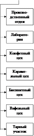 3.2.АНАЛИЗ МЕСТОПОЛОЖЕНИЯ И ОРГАНИЗАЦИОННАЯ СТРУКТУРА УПРАВЛЕНИЕ ПРЕДПРИЯТИЕМ ОАО «Вкусняшка» располагается в г. Балабаново по ул. Лесной, 20- А. Предприятие находится в областном центре. Данное месторасположение предприятия удачно сочетает близостью к рынкам сбыта, удобством для поставщиков и потребителей. В городе имеется большой резерв рабочей силы, топливо, энергия по приемлемым ценам, хорошие транспортные средства и соответствующее водоснабжение. .[11] Схема 3 Организационная структура ОАО «Вкусняшка»