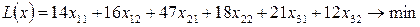 Целевая функция Целью решения задачи является выполнение заказа с минимальными затратами времени, т.е. критерием эффективности решения служит показатель времени на выполнение всего заказа. Поэтому ЦФ должна быть представлена формулой расчета затрат времени. Затраты времени станками на производство одного изделия известны из условия. Таким образом, ЦФ имеет вид: