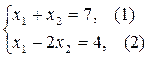 (6) Точка Е - это последняя вершина многоугольника допустимых решений, через которую проходит целевая прямая, двигаясь по направлению вектора (7) Координаты точки Е, найдем как решение системы уравнений