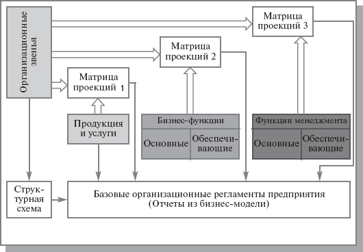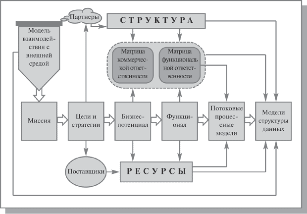 Рис. 4.3. Полная бизнес-модель компании Организационный анализ предполагает построение комплекса взаимосвязанных информационных моделей компании, который включает: