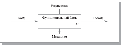 Интерфейсная дуга (Arrow) отображает элемент системы, который обрабатывается функциональным блоком или оказывает иное влияние на функцию, представленную данным функциональным блоком. Интерфейсные дуги часто называют потоками или стрелками. С помощью интерфейсных дуг отображают различные объекты, в той или иной степени определяющие процессы, происходящие в системе. Такими объектами могут быть элементы реального мира (детали, вагоны, сотрудники и т.д.) или потоки данных и информации (документы, данные, инструкции и т.д.). В зависимости от того, к какой из сторон функционального блока подходит данная интерфейсная дуга, она носит название "входящей", "исходящей" или "управляющей". Необходимо отметить, что любой функциональный блок по требованиям стандарта должен иметь, по крайней мере, одну управляющую интерфейсную дугу и одну исходящую. Это и понятно – каждый процесс должен происходить по каким-то правилам (отображаемым управляющей дугой) и должен выдавать некоторый результат (выходящая дуга), иначе его рассмотрение не имеет никакого смысла. Обязательное наличие управляющих интерфейсных дуг является одним из главных отличий стандарта IDEF0 от других методологий классов DFD (Data Flow Diagram) и WFD (Work Flow Diagram). Декомпозиция (Decomposition) является основным понятием стандарта IDEF0. Принцип декомпозиции применяется при разбиении сложного процесса на составляющие его функции. При этом уровень детализации процесса определяется непосредственно разработчиком модели. Декомпозиция позволяет постепенно и структурированно представлять модель системы в виде иерархической структуры отдельных диаграмм, что делает ее менее перегруженной и легко усваиваемой. Последним из понятий IDEF0 является глоссарий (Glossary). Для каждого из элементов IDEF0 — диаграмм, функциональных блоков, интерфейсных дуг — существующий стандарт подразумевает создание и поддержание набора соответствующих определений, ключевых слов, повествовательных изложений и т.д., которые характеризуют объект, отображенный данным элементом. Этот набор называется глоссарием и является описанием сущности данного элемента. Глоссарий гармонично дополняет наглядный графический язык, снабжая диаграммы необходимой дополнительной информацией. Модель IDEF0 всегда начинается с представления системы как единого целого – одного функционального блока с интерфейсными дугами, простирающимися за пределы рассматриваемой области. Такая диаграмма с одним функциональным блоком называется контекстной диаграммой . В пояснительном тексте к контекстной диаграмме должна быть указана цель (Purpose) построения диаграммы в виде краткого описания и зафиксирована точка зрения (Viewpoint). Определение и формализация цели разработки IDEF0-модели является крайне важным моментом. Фактически цель определяет соответствующие области в исследуемой системе, на которых необходимо фокусироваться в первую очередь. Точка зрения определяет основное направление развития модели и уровень необходимой детализации . Четкое фиксирование точки зрения позволяет разгрузить модель, отказавшись от детализации и исследования отдельных элементов, не являющихся необходимыми, исходя из выбранной точки зрения на систему. Правильный выбор точки зрения существенно сокращает временные затраты на построение конечной модели. Выделение подпроцессо