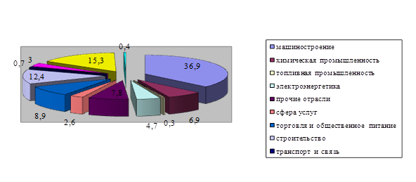 Рис. 2. Распределение ссудного портфеля по отраслям экономики (%) Высокие темпы роста кредитного портфеля в 2007 году были характерны для: 1. предприятий химической промышленности (рост в 5,3 раза, объем задолженности 304, 9 млн. рублей); 2. сферы услуг (в 3, 7 раза, 117, 3 млн. рублей); 3. лёгкой промышленности (в 2, 3 раза, 124, 0 млн. рублей); 4. лесной и деревообрабатывающей промышленности (в 1, 8 раза, 17, 8 млн. рублей); 5. пищевой промышленности (в 1, 9 раза, 438, 6 млн. рублей); 6. электроэнергетики (в 1, 6 раза, 210, 5 млн. рублей); 7. машиностроения (в 1, 5 раза, 1640, 2 млн. рублей). Особое внимание Банк уделяет развитию операции кредитования организаций сельского хозяйства, кредитный портфель по которым за год увеличился на 9,6% и составил 133, 4 млн. рублей. Доля кредитов, предоставленных АКБ «Сбербанк», в общем объёме сельскохозяйственных предприятий на территории РФ на протяжении последних лет стабильно превышает 70%. В рамках программы государственной поддержки сельскохозяйственных товаропроизводителей, предусматривающей возмещение из федерального и республиканского бюджетов части затрат на уплату процентов, АКБ «Сбербанк» предоставлено более 400 кредитов на общую сумму 651,6 млн. рублей, в том числе на приобретение сельскохозяйственной техники - 12 кредитов на сумму 22, 1 млн. рублей. В 2007 году Банк принял участие в кредитовании подрядных организаций на строительство газораспорядительных сетей к населённым пунктам РФ, с субсидированием процентной ставки за счёт средств республиканского бюджета. В течение года в рамках данной программы выдано кредитов на сумму 257, 6 млн. рублей. Продолжено участие Банка в кредитовании подрядных организаций на осуществление дорожного строительства. Кредитная политика банка строится с учётом интересов всех групп клиентуры, независимо от размеров бизнеса или формы собственности клиента. Приоритетное внимание оказывается предприятиям, имеющим кредитную историю и ведущим основной бизнес через счета в АКБ «Сбербанк». Традиционно в течение ряда лет кредитуются крупнейшие предприятия Российской Федерации - VIP-заёмщики Банка: 1. ОАО «Вымпелком»; 2. ОАО «Химпром»; 3. ОАО «РАО ЕЭС»; 4. ОАО «Промтракторпромлит»; 5. ОАО «Мосэнерго ». Кредитуются в Банке крупные заёмщики федерального уровня: 1) РАО «ЕЭС России»; 2) ОАО «Вымпелком»; 3) ОАО «Связьинвест»; 4) Московский вагоноремонтный завод - филиал ОАО «Российские железные дороги»; 5) Филиал ФГУП «Росспиртпром» и др. Малый бизнес составляет традиционную клиентуру ОАО АКБ «Сбербанк». Более половины (58%) предоставленных кредитов приходится на клиентов объёмом заимствований до 1 млн. рублей. Объём кредитов предпринимателям без образования юридического лица достиг 361, 4 млн. рублей. В рамках поддержки малого бизнеса совместно с Правительством РФ реализуется программа субсидирования процентных ставок по кредитам, полученным в Банке малыми предприятиями и предпринимателями без образования юридического лица. Остаток ссудной задолженности по данной программе увеличился более чем в 3, 2 раза. Кредиты адаптированы к упрощённой форме отчётности и системе налогообложения малых предприятий. Стремясь расширить спектр и качество кредитных отношений, Банк непрерывно совершенствует и обновляет продуктовый ряд, включающий кредитные продукты как универсальные, так и учитывающие специфику отдельны групп клиентов. 