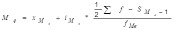 М = 19 + (9* (20 – 17) / ((20 – 17) + (20 – 18)) = 19 + 27 / 5 = 24,4года 24,4 года - это величина признака (варианта), который наиболее часто встречается в данной совокупности, т.e. это варианта, имеющая наибольшую частоту. Найдем медиану по формуле: