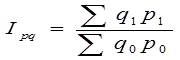 Ipq = (50,4 + 53,6) / (36,8 + 31,2) = 1,53 Общий индекс цен найдем по формуле: