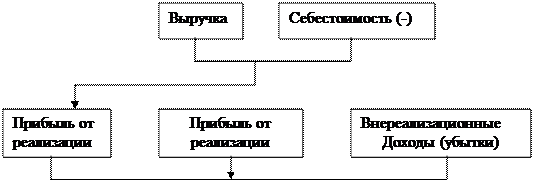 Финансовый результат – конечный итог хозяйственной деятельности, который выражается в виде валовой прибыли или убытка от различных хозяйственных операций. Таким образом, финансовым результатом может выступать не только прибыль, но и убыток, образованный, например, по причине чрезмерно высоких затрат на производство, срыва реализации продукции в связи с нарушением хозяйственных договоров. Представим формирование финансовых результатов в схеме на рис. 4 Схема формирования финансовых результатов