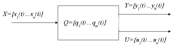 Преобразование информации в ЭВМ производится электронными схемами двух типов: комбинационными схемами и цифровыми автоматами (накапливающими или последовательностными схемами). Более сложный класс преобразователей дискретной информации составляют цифровые автоматы. ЦА в отличие от комбинационной схемы имеет некоторое конечное число различных внутренних состояний. Под воздействием входного слова ЦА переходит из одного состояния в другое и выдаёт выходное слово. Выходное слово в такте на выходе ЦА в общем случае определяется входным словом, поступившем на вход автомата в этот такт и внутренним состоянием автомата, которое явилось результатом воздействия на автомат входных слов в предыдущие такты. Комбинация входного слова и текущего состояния автомата в данном случае определяет не только входное слово, но и то состояние, в которое автомат перейдёт к началу следующего такта. В ЭВМ в качестве элементарных автоматов используются главным образом триггеры. Особенности построения цифровых устройств связаны со способом передачи информации между логическими элементами. Основные понятия теории автоматов.В данной части курсового проекта будут рассмотрены некоторые виды цифровых автоматов, принципы их построения и их различия, в зависимости от вида. Углубленная проработка данного вопроса необходима для оптимального решения задания курсового проекта. Термин автомат, как правило, используется в двух аспектах. В первом случае, автомат это устройство, выполняющее некоторые функции без непосредственного участия человека. Исходя из этого определения, можно сказать, что ЭВМ — автомат, так как после загрузки программы и исходных данных ЭВМ решает заданную задачу без участия человека. Во втором случае, термин "автомат" как математическое понятие обозначает математическую модель реальных технических автоматов. В этом аспекте автомат представляется как "чёрный ящик", имеющий конечное число входов и выходов и некоторое множество внутренних состояний Q = {q1(t), q2(t) ... qn(t)}, в которые он под воздействием входных сигналов переходит скачкообразно, т. е. практически мгновенно, минуя промежуточное состояние. Но это условие идеализированно, поскольку очевидно, что реальный переходный процесс длится конечное время. Автомат называется конечным, если множество его внутренних состояний и множество значений входных сигналов — конечные множества. В практике часто используется понятие цифрового автомата, под которым понимают устройство, предназначенное для преобразования цифровой информации. Входные сигналы в цифровых автоматах представляются в виде конечного множества мгновенных сигналов. В целях упрощения рассмотрения процессов, происходящих в цифровых автоматах, поскольку все события (состояния) должны относиться к фиксированному моменту времени t, то теоретически считают, что входные сигналы не имеют длительности, но реально это не так. Условно также принимается, что число выходных сигналов y(t) конечно и они возникают в результате действия входных сигналов. При этом следует учитывать, что одновременно с появлением выходного сигнала происходит скачкообразный переход автомата из состояния q1(t) в состояние q2(t). П Рис. 1. Абстрактный автомат с одним входом и одним выходомМатематической моделью цифрового автомата является абстракт