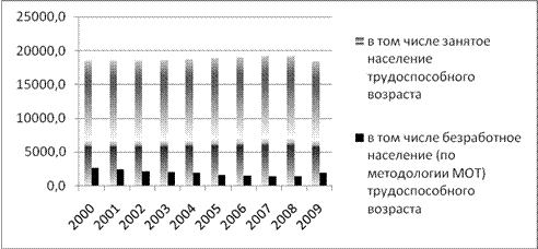 Рис. 1.2 Занятое и безработное население Украины в возрасте 15-70 лет в период с 2000г. по 2009г.