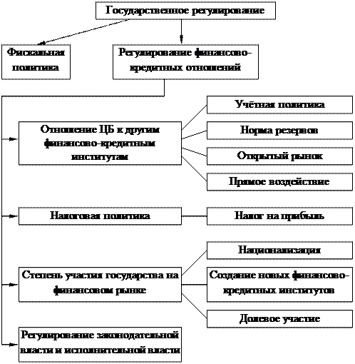 С помощью пассивных образуются банковские ресурсы. С помощью активных банки размещают получаемые ресурсы. Банковские ресурсы включают: 1. Собственный капитал банка, в который включены: - первоначальный акционерный (уставный капитал); - резервы; - накопленная прибыль; 2. Заёмные средства – депозиты, принимаемые от клиента. Пассивные операции включают в себя: - эмиссию акций; - продажу депозитных сертификатов; - мероприятия по расширению клиентской базы. Активные операции банков: - вексельные; - подтоварные; - фондовые; - ипотечные; - лизинговые; - трастовые и др. §3. Кредит. Коммерческий банк считается ликвидным, если суммы его наличных средств и других ликвидных активов, а также возможность быстро мобилизовать средства из других источников достаточно для погашения долговых и финансовых обязательств. Для оценки ликвидности банков применяют критерии оценки уровня ликвидности. Ссудный капитал – денежный капитал, предоставляемый в ссуду его собственниками на условиях гарантированного возмещения и внесения платы за пользование в виде процентов. Движение ссудного капитала – кредит. Кредит как экономическая категория выражает отношения между кредитором и заёмщиком по поводу возвратно движения стоимости. Основной целью кредитной политики в масштабах государства является соблюдение баланса между стабилизацией кредитно-денежной системы и стимулирующим производство. Важную роль в этом процессе играют финансовые институты, осуществляющие кредитную эмиссию (ЦБ, КБ, др. кредитно-финансовые учреждения), которые являются основными субъектами рынка ссудных капиталов. Основные источники ссудного капитала: 1) денежные накопления государства; 2) денежные доходы и сбережения частных лиц; 3) амортизационные фонды; 4) часть оборотного капитала высвобождается в денежной форме в связи с несовпадением времени продажи изготовленных товаров и приобретением сырья, топлива и материалов, необходимых для продолжения процессов производства; 5) капитал временно свободный в промежутках между выплатой зарплаты и поступлением денежных средств; 6) накапливаемая для капитализации стоимость. Основные формы кредита: - банковские; - коммерческие. Формы кредита различаются по составу участников, объектам ссуд, динамике, величине процента и сфере функционирования и т.д. Основные виды кредита: - банковские; - коммерческие; - потребительские; - государственные; - международные. Банковский объект кредита – денежный капитал. Заёмщиком может выступать государство, население и фирмы. Кредитор – преимущественно банк. Банковский кредит предоставляется в виде ссуд. Сфера использования банковского кредита – обращение товаров и накопление капитала (превращение в капитал части денежных доходов и сбережений). Коммерческий кредит – кредит, предоставляемый одними предприятиями другим предприятиям в виде продажи товара с отсрочкой платежа. Инструментом коммерческого кредита является вексель. Объект – товарный капитал Цели – ускорение реализации товаров и заключённой в них прибыли. Процент по коммерческим кредитам, как правило, ниже, чем по банковскому. Принципы кредитования: - срочность; - возвратность; - платность; - обеспеченность или гарантированность; - дифференцируемость. XIII. Дополнение. Схема функционирования рыночной экономики