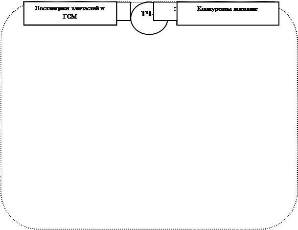 Рис. 1.1. Внешняя среда локомотивного депо. Проведем анализ внешней среды прямого воздействия, то есть непосредственного окружения: А) Покупатели услуг – это грузоотправители и пассажиры по маршрутам город Комсомольск – станция Волочаевка-2, город Комсомольск – станция Высокогорная, город Комсомольск – город Новый Ургал. Если пассажирские перевозки осуществляются согласно графика движения пассажирских поездов, то сложнее обстоит с грузовыми перевозками, которые приносят основной доход предприятию. Здесь ТЧ-9 необходимо постоянно анализировать работу постоянных грузоотправителей и грузополучателей (например, таких как Комсомольский Нефтеперерабатывающий завод, завод «Амурлитмаш», завод «Амурсталь, завод им. Ленинского Комсомола, КНаАПО, леспромхоз и др.). систематический анализ грузопотока позволит с наименьшей погрешностью спланировать необходимое количество локомотивов и локомотивных бригад, а так же величину предстоящих доходов. Б) Комсомольское отделение ДВжд. ТЧ-9 является обособленным подразделением Комсомольского отделения ДВжд, относящегося к Федеральной собственности. Но ТЧ-9 не является юридическим лицом, то есть выступает в гражданском обороте от имени, попоручению и под ответственность Комсомольского отделения ДВжд. Отделение оказывает большое влияние на деятельность ТЧ-9, так как доходы, поступающие на счета депо распределяются Комсомольским отделением ДВжд по его обособленным подразделениям. Отделение выделяет средства на развитие производства, закупку запчастей и ГСМ, лимитирует выделение этих средств, планирует рабочий парк локомотивов и количество ремонтов ТР-3 и тд. В) Поставщики запчастей и ГСМ. ТЧ-9 получает ГСМ по лимиту Комсомольского отделения ДВжд. Рынок горюче-смазочных материалов в Российской федерации довольно обширен, поэтому есть возможность выбора при котором необходимо построить такие отношения с поставщиками, которые бы обеспечили ТЧ-9 максимум эффективности во взаимоотношений с ними (то есть учитывается стоимость и качество товара, графики поставки, пунктуальность и обязательность условий поставки). Этой же концепции необходимо придерживаться и вовзаимоотношениях и с поставщиками запчастей, но здесь из-за специфики производства (ремонт локомотивов) количество поставщиков очень мало, что дает им возможность диктовать свои условия. Здесь необходимо изыскивать возможность размещения заказов на запчасти по предприятиям «Военно-промышленного комплекса», обладающим высокими технологиями и мобильностью при переходе на новые виды продукции. Г) Внутриотраслевые конкуренты. Внутриотраслевыми конкурентами ТЧ-9 являются ТЧ-10 – Локомотивное депо станции Высокогорная и ТЧ-13 – Локомотивное депо города Новый Ургал. Эти внутриотраслевые конкуренты так же являются обособленными подразделениями Комсомольского отделения ДВжд, чем все и осложняется. Отделение выделяет количество «ниток», то есть грузовых поездов по линии город Комсомольск – станция Высокогорная и город Комсомольск - Новый Ургал для всех трех локомотивных депо, причем постоянно корректирует их количество в сторону уменьшения или увеличения. ТЧ-9 выступает монополистом среди локомотивных депо только на линии город Комсомольск – станция Волочаевка-2. Естественно увеличение или уменьшение грузопотока сказыва