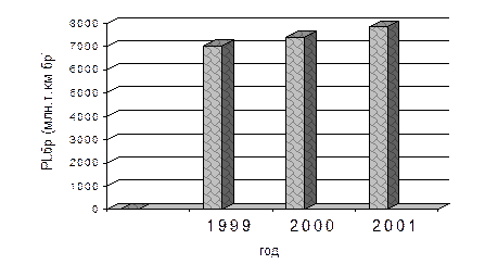 На основании таблицы 3.9 можно сделать вывод: В целом в ТЧ-9 произошло увеличение грузооборота на 110,4 млн.т.км брутто, их них за счет увеличения пробега локомотивов во главе поездов – 85 млнт.км.брутто и за счет увеличения среднего веса состава – 25,4 млн.т.км.брутто. если проанализировать отдельные составляющие, то: произошло увеличение тонно-километровой работы в грузовом движении на 175,8 млн.т.км.брутто, но в то же время произошло снижение в хозяйственном движении на 45 млн.т.км.брутто и пассажирском движении на 20,4 млн.т.км.брутто. на увеличение тонно-километровой работы в грузовом движении оказало влияние увеличение веса состава, что дало увеличение на 301,1 млн.т.км.брутто, но в то же время уменьшение пробега локомотивов во главе поездов в грузовом движении дало снижение на 125,3 млн.т.км.брутто. Снижение тонно-километровой работы в хозяйственном движении дало снижение веса состава, за счет чего снижение составило 76,8 млн.т.км.брутто, а увеличение пробега во главе поездов не смогло перекрыть снижение веса состава, хотя и дало увеличение на 31,8 млн.т.км.брутто. На снижение тонно-километровой работы в пассажирском движении оказало влияние снижение веса состава (за счет уменьшения количества вагонов), что составило26,6 млн.т.км.брутто, а увеличение пробега во главе поезда дало незначительное увеличение грузооборота, составляющее – 5,8 млн.т.км.брутто. Расчет факторов в таблице 3.9. производился следующим образом: ΔРL бр(ΣМ Sг ол) = 7731 * 1,011 – 7731 = 7816 – 7731 = 85 млн.т.км.бр. ΔРL бр( Q бр) = 7841,4 – 7731 * 1,011 = 7841,4 – 7816 = 25,4млн.т.км.бр. ΔРL бр(ΣМ Sг ол) = 6959 * 0,982 – 6959 = 6833,7 – 6959 = -125,3млн.т.км.бр. ΔРL бр( Qбр ) = 7134,8 – 6959 * 0,982 = 7134,8 – 6833,7 = 301,1млн.т.км.бр. ΔРL бр(ΣМ Sг ол) = 577 * 1,01 – 577 = 582,8 – 577 = 5,8 млн.т.км.бр. ΔРL бр( Qбр ) = 556,6 – 577 * 1,01 = 556,6 – 582,8 = - 26,2 млн.т.км.бр. ΔРL бр(ΣМ Sг ол) = 195 * 1,163 – 195 = 226,8 – 195 = 31,8 млн.т.км.бр. ΔРL бр( Qбр ) = 150 – 195 * 1,163 = 150 – 226,8 = - 76,8 млн.т.км.бр. Выводы: В соответствии с данными таблиц 3.5 – 3.9 и рис. 3.1 – 3.4 анализ объемных показателей локомотивного депо за период 1999 – 2001 г.г. показал, что с 1999 года наметилась тенденция увеличения грузооборота, который в2001 году увеличился на 811,3 млн.т.км.брутто к отчету 1999 года. Увеличение общего грузооборота произошло за счет увеличения тонно-километровой работы в грузовом движении в 2001 году на 836,6 млн.т.км.брутто к уровню 1999 года. Пассажирооборот имеет стойкую тенденцию к снижению: в 2001 году он снизился на 35,7 млн.т.км.брутто к уровню 1999 года, что объясняется убыточностьюпассажироперевозок побуждающих руководство снижать их объемы за счет сокращения количества пассажирских и пригородных поездов. После спада в 2000 году общего пробега локомотивов на участках обслуживания локомотивных бригад наметился рост в 2001 году, составивший 85,2 тыс.лок.км к уровню 2000 года, но не достигший уровня 1999 года, то есть уменьшение на 74,6 тыс.лок.км. пробег локомотивов во главе поездов имеет стойкую тенденцию к снижению: 1999 год – 3434,4 тыс.лок.км, 2000 год – 3429,5 тыс.лок.км, 2001 год – 3401,56 тыс.лок.км, что само по себе является негативным фактором. И как следствие – это увеличение вспомогательного пробега к уровню 2000 года на62,6 тыс.лок.км. Если рассмотреть в удельных весах грузооборот, то: наибольший удельный вес занимают грузовые перевозки – 1999 г – 89,6%, 2000г. – 89,7%, 2001 г. – 91%, и к тому же удельный вес их из года в год возрастает; удельный вес пассажирских перевозок снижается - 1999г. – 8,4%, 2000г. – 7,7
