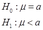 Рисунок 3 – Критическая область при альтернативной гипотезе «меньше чем». Гипотезы: