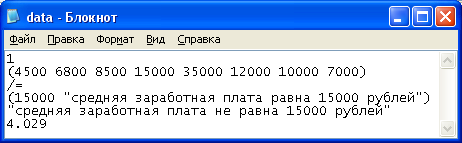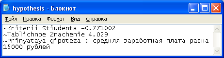 Определение критической области. Для определения критической области рассчитаем число степеней свободы t (14, 0.01)=2.977 [t(n-1, Правило принятия (отвержения) гипотезы: если TR<-2.977, то отвергается H0 и принимается H1. Поскольку -0.23>-2.977, то нулевая гипотеза не отвергается, по вероятности ошибки 0.01. Следовательно, средняя заработная плата до проведения реформ равна средней заработной плате после проведения реформ. Таким образом, проведенные реформы не привели к существенному росту благосостояния населения. 2 Математические и алгоритмические основы решения задачи 2.1 Общие понятия статистической проверки гипотез Статистическая гипотеза обычно представляет собой некоторое предположение об одном или нескольких параметрах функции распределения случайной величины. Пример статистической гипотезы: «генеральная совокупность распределена по нормальному закону», «различие между дисперсиями двух выборок незначимо» и т.д. В теории статистического вывода обычно проверяются гипотезы на основе выборочной информации. В практике статистической работы чаще всего имеют дело с двумя конкурирующими гипотезами: нулевой гипотезой, обозначаемой H0; и альтернативной гипотезой, обозначаемой H1. Нулевая гипотеза используется при статистической проверке гипотез об отсутствии существующих различий между несколькими выборочными совокупностями, для суждения о близости фактического распределения к теоретическому (нормальному), об отсутствии зависимости между признаками. Суть нулевой гипотезы состоит в признании того, что выборки взяты из одной совокупности, фактическое распределение укладывается в теоретическое, зависимость между признаками отсутствует и т. д. Следовательно, нулевая гипотеза - это гипотеза, подлежащая проверке. И если отвергается нулевая гипотеза как неподходящая в каком-то статистическом смысле, то принимается альтернативная гипотеза. Так как мы имеем дело с неизвестной генеральной совокупностью и выносим суждения о ней на основе выборочной информации, то мы можем и не прийти к правильному выводу. Мы сделаем неправильный вывод, если отвергнем нулевую гипотезу, когда она справедлива (ошибка I рода), или примем нулевую гипотезу, когда она ошибочна (ошибка II рода). В большинстве случаев при проведении проверки гипотез в экономике задается некоторый допустимый уровень вероятности совершения ошибки I рода ( чем больше степень уверенности в нулевой гипотезе, тем меньше должно быть значение чем больше цена отбрасывания справедливой нулевой гипотезы, тем меньше значение должно иметь Сформулируем общий алгоритм проверки статистических гипотез. Процедуру проверки можно описать следующими шагами: 1) формулировка гипотезы. Гипотеза формулируется в терминах различия величин. Например, есть случайная величина х и константа a. Они не равны (арифметически), но нужно установить, значимо ли статистически между ними различие. Существует два типа критериев: а) двухсторонний критерий вида: х б) односторонний критерий вида: х< a или х< a. Необходимо отметить, что знаки >, <, = здесь используются не в арифметическом, а в «статистическом» смысле. Их необходимо читать «значимо больше», «значимо меньше», «различие незначимо». 2) Установка закона распределения. Далее необходимо установить или постулировать закон распределения. Существуют также критерии, ко