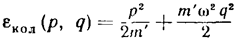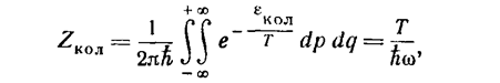 (27) (28) В этой формуле для молекул из одинаковых атомов множитель [(2)] должен быть опущен. Первые два члена разложения Eкол равны (29) Появление здесь постоянного члена — 1/2Nћω связано с тем, что, мы отсчитываем энергию от низшего квантового уровня (т. е. от энергии «нулевых колебаний»), между тем как классическая энергия должна была бы отсчитываться от минимума потенциальной энергии. Выражение (26) для свободной энергии можно, конечно, получить и классическим путем, поскольку при T>>ћω существенны большие квантовые числа V, для которых движение квазиклассично. Классическая энергия малых колебаний с частотой ω имеет вид (т'— приведенная масса). Интегрирование с этим выражением для ε даст для статистического интеграла значение