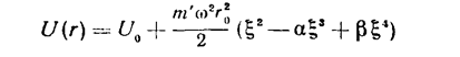 Приближение, соответствующее независимым гармоническим колебаниям и вращению молекулы, получается, если положить U(r)=U0+1/2m′ω²(r-r0)², и при интегрировании заменить медленно меняющийся множительr² на г02 , где r0—равновесное расстояние между обеими частицами; U0 = U ( r 0 ). Чтобы учесть ангармоничность колебаний и их взаимодействие с вращением, пишем теперь