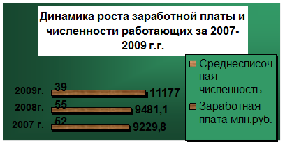 Рисунок 5 - Динамика роста заработной платы и численности работающих за 2007-2009 годы Экономический рост выделенных бюджетных средств за 2007-2009 год на основании 164 формы «Сведения об исполнении бюджета» показаны в таблице 4 Таблица 4 - Экономический рост выделенных бюджетных средств за 2007-2009 годы