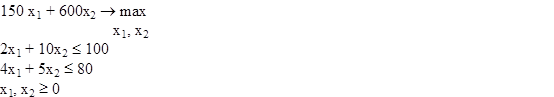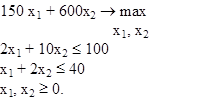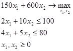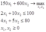 ), максимальное решение целевой функции 20x1