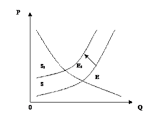 Но отношения между совокупным спросом, с одной стороны, и объемом производства, занятостью и уровнем цен, с другой стороны, гораздо сложнее (рис.1 и рис.2). На первом отрезке кривой общие расходы до такой степени низки, что объем валового национального продукта отстает от своего максимального уровня. Уровень безработицы высок, большая доля производственных мощностей бездействует. Предположим, что совокупный спрос начал расти, это приведет к росту производства, снижению безработицы, уровень цен будет очень медленно повышаться (это объясняется тем, что существует огромное количество незадействованных трудовых и материальных ресурсов: ведь вчерашние безработные не будут сразу требовать повышения заработной платы). По мере роста спроса экономика вступает во второй отрезок кривой: растет производство, растут цены. По мере расширения производства запасы исчерпываются, все труднее и труднее находить необходимые экономические ресурсы. Ведь привлечение квалифицированной рабочей силы требует более высокой заработной платы, что приведет к росту издержек и, соответственно, цен. Третий отрезок характеризуется полной занятостью, достигнут максимальный валовый продукт, то есть экономика не может отвечать на рост спроса увеличением объема. Единственное, что может вызвать увеличивающийся совокупный спрос, - это рост цен. Условия инфляции спроса: а) рост спроса со стороны населения, факторами которого выступают рост заработной платы и рост занятости; б) увеличение инвестиций и спроса на капитальные товары во время экономического подъема; в) рост государственных расходов (рост военных и социальных заказов). Допустим, что экономика близка к полной занятости и загруженности производственных мощностей. Рост расходов населения, предприятий, государства на потребление смещает кривую совокупного спроса вверх, растут цены. Инфляция предложения означает рост цен, спровоцированный увеличением издержек производства в условиях недоиспользования производственных ресурсов. Ее иногда так и называют – «инфляцией издержек производства». В последнее время тип инфляции, при которой цены растут при снижении совокупного спроса, часто встречается в мировой практике. Рис.3 – Инфляция предложения