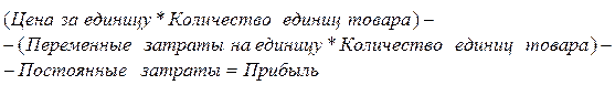 Рис.1 -График нахождения точки безубыточности (порога рентабельности) Изображенная на рисунке точка безубыточности (порога рентабельности) - это точка пересечения графиков валового объема продаж и совокупных затрат. Размер прибыли или убытков заштрихован. В точке безубыточности объем продаж равен совокупным затратам, при этом прибыль равна нулю. Объем производства (продаж) в точке безубыточности называется пороговым объемом производства (продаж) . Если организация продает продукции меньше порогового объема продаж, то оно терпит убытки, если больше - получает прибыль. График, представляющий линию постоянных расходов над переменными удобен для бухгалтеров, так как на нем хорошо виден размер маржинального дохода. Линия выручки и линия переменных расходов выходят из нулевой точки, и расстояние между линиями по вертикали дает маржинальный доход при любом объеме. 3.3 Метод уравнения. Для определения точки безубыточности (порога рентабельности) в международной практике также используют метод уравнений , основанный на исчислении прибыли организации по формуле: