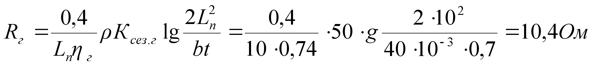 где b – ширина полосы, для круглого горизонтального заземлителя b = 40, t – глубина заложения