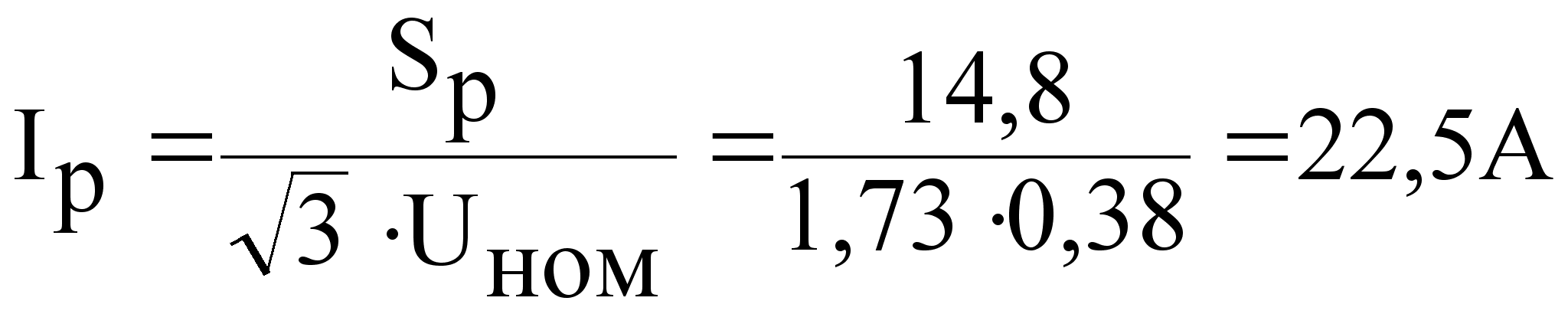 2.4.2 Определяем сечение кабеля для силового шкафа №1. 1) Расчетный ток СШ1 равен Iр = 22,5 А По рекомендации выбираем кабель сечением S = 10 мм2 и допустимым током Iд = 85 А; 2) Проверяем выбранный кабель по условию нагрева